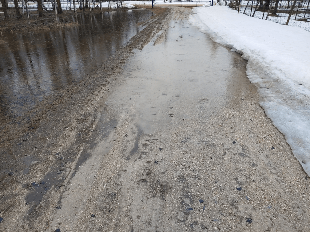 The driveway itself isn’t draining very well. We can still drive through, but I wouldn’t want to unless we absolutely had to, as we’d be just causing more damage.