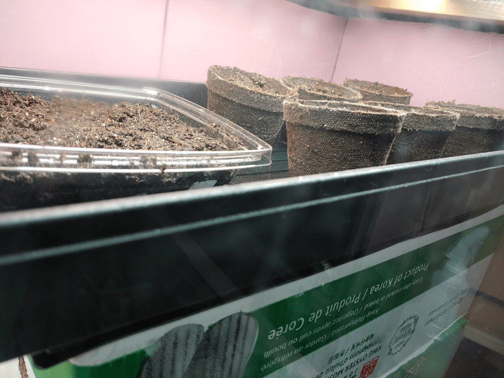 The pots that had been on the heat mat got shifted over, but are still in the big aquarium.