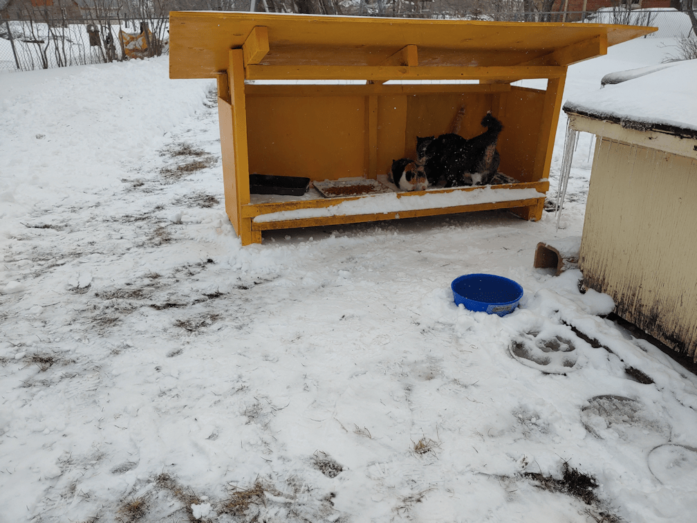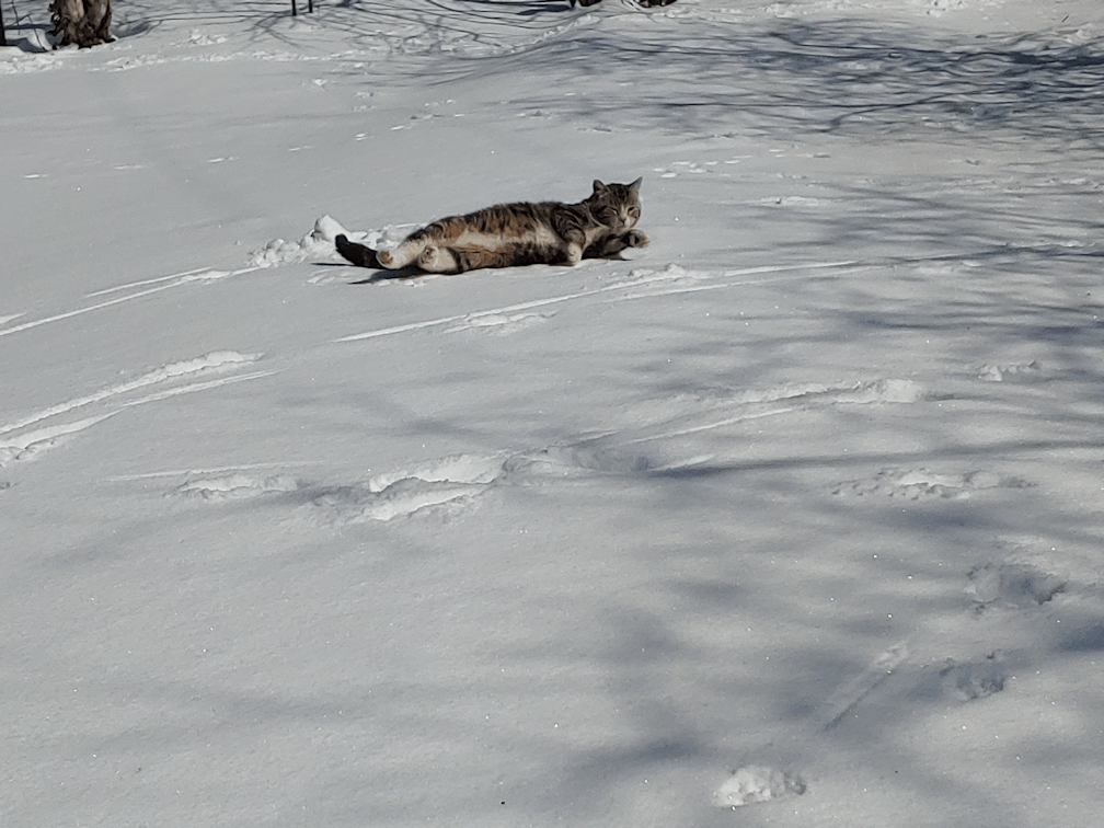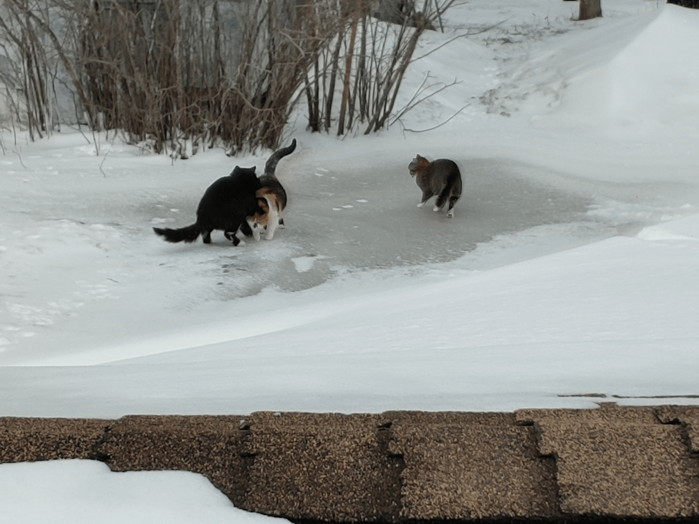 I’ve been seeing Rosencrantz around a lot, lately. She is no longer meowing at me while trying to pull me places. I suspect she has lost her litter. Even if she had moved them somewhere else, I would expect her to quickly eat and go, like Junk Pile and Ghost Baby are doing. She just hangs around, and even followed me a bit, while I was doing my rounds. There is still no way we can get into the old freezer where I think she had her litter. It’ll take a few more days of thawing out, at least, before we can move some of the stuff out of the way.