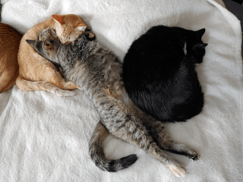 I love how Beep Beep is all stretched out, yet still managing to cuddle with her baby girl! Which is funny, because when they’re not cuddling, they’re usually fighting.