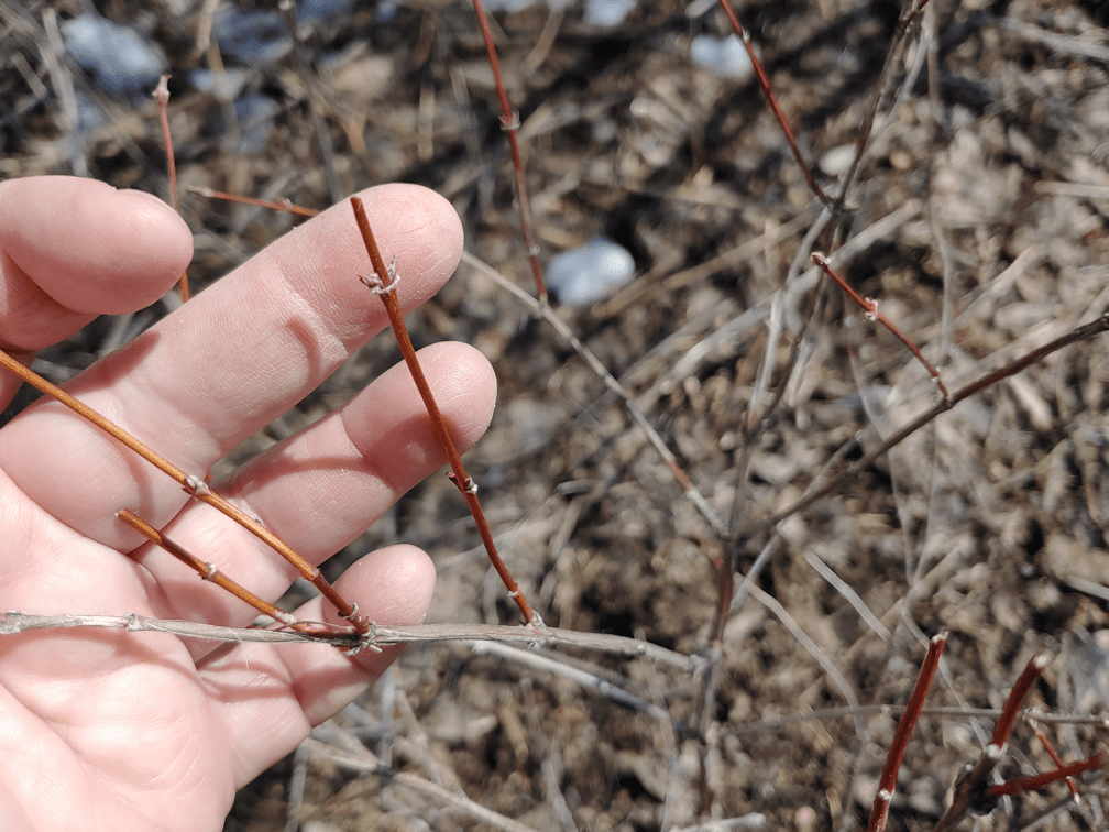 The male haskap, which is the largest of them, has been deer damaged, but you can see that leaf buds are emerging.