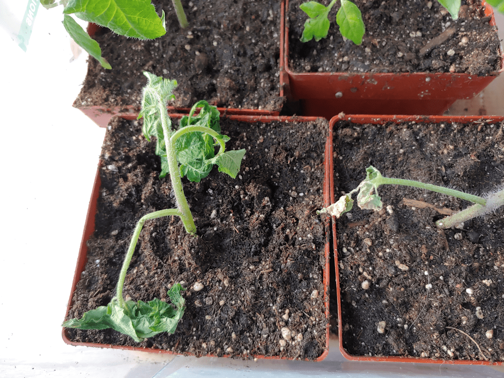I just buried the stem on the soil. Hopefully, those hair roots on the stem will do their job, and it will recover. If it doesn’t, we still have quite a lot of Cup of Moldova tomatoes.