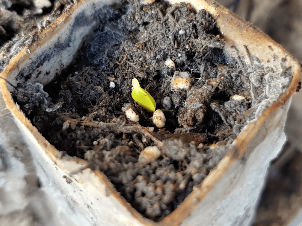 The very first Tulip tree has emerged! I was really wondering how these would do, as there is so much mold on the soil and pots.
