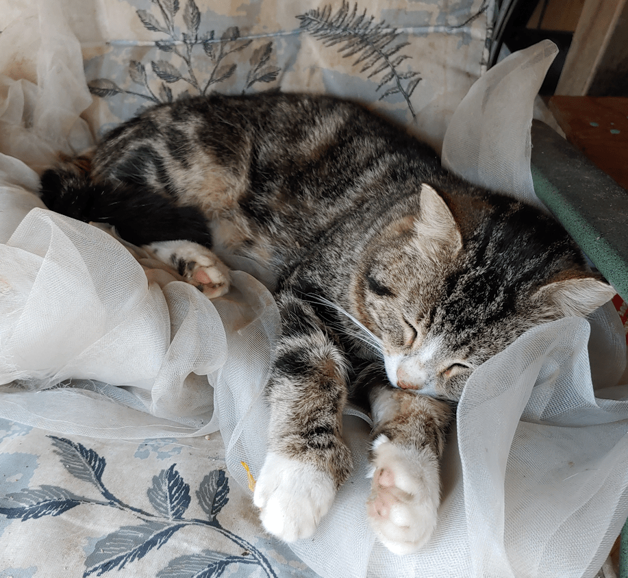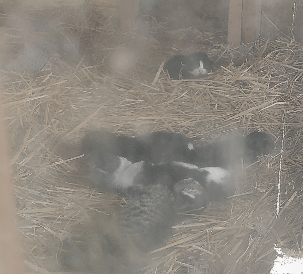 Looking at the photo above, it looks like there are two much smaller kittens! And possibly that 4th dark, possibly black, kitten I can never be sure I’m seeing.
