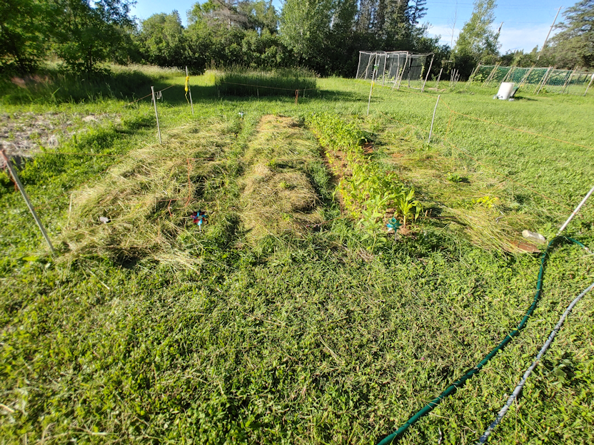 Well, there’s a whole area just north of the garden that’s too overgrown to mow. I’ll start scything that to use on the nearby squash patch, so that I’m not having to use the wagon to bring it over.