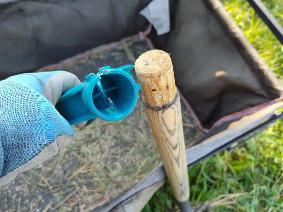 Doing a burn in what turned out to be 26C/79F – not even the hottest part of the day – was not going to be fun. Some time ago, while cleaning out the sun room and the old kitchen, we found the parts of a beach umbrella.