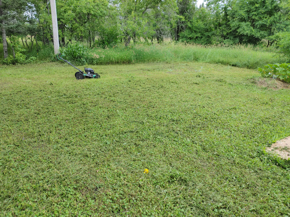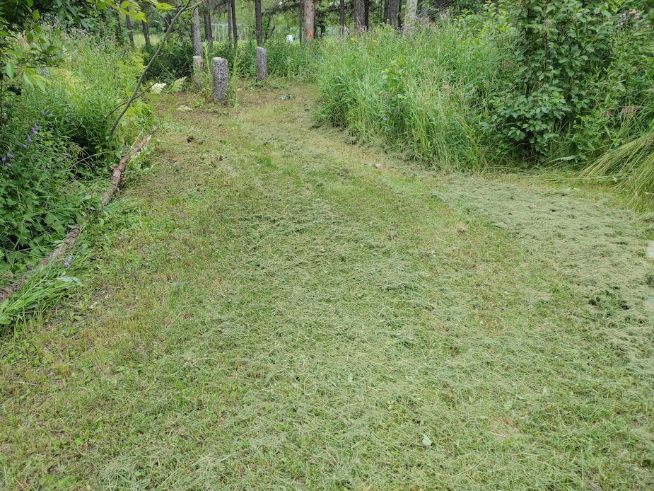 I FINALLY managed to mow most of the space in the maple grove. Well. Not most. We can access the branch piles now, at least. The other half will wait for another day.