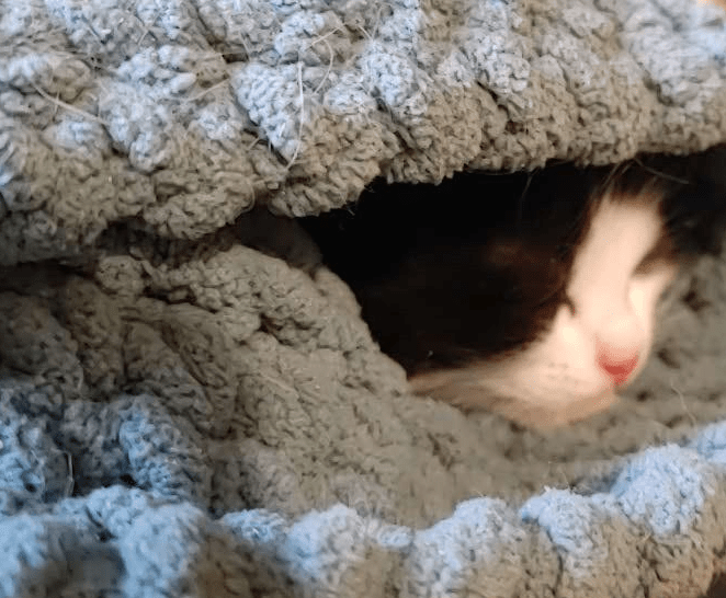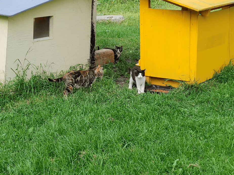 I saw the tuxedo that is sibling to the black and white but couldn’t get a picture. He kept running behind things and hiding from me.