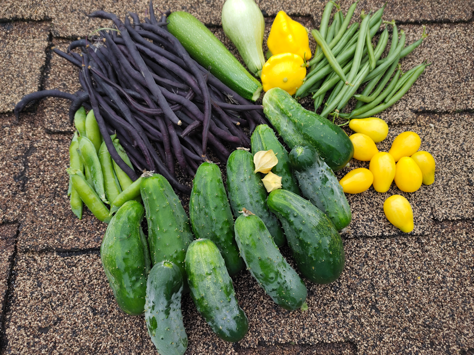 The beans might be winding down, but the yellow pear tomatoes are winding up. I’m hand pollinating the summer squash as much as I can, so hopefully we will be picking more those, soon, but sometimes, there’s just nothing to pollinate.