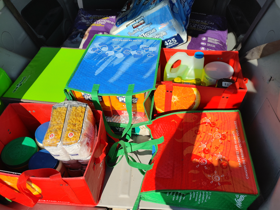 It’s a ridiculously small Costco shop for the money, but that was what the budget allowed for. I did make a quick stop at a nearby Superstore to pick up a couple of bags their $5 buns, and a non-Costco size of paper towels, a specific snack my husband requested, and a sandwich and drink for me to ingest on the trip home. With that one, I at least had enough loyalty points accumulated that I was able to get what would have been $38 for $8, instead.