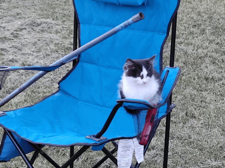 It took a few sprays of the hose for him to learn to stay away from the fire ring and burn barrel, but he quickly learned that if he was in my chair, I would let him stay.