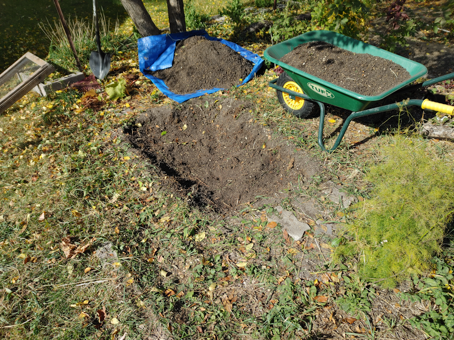 Some of the roots, from the nearby ornamental apple trees, needed loppers to clear them out. I ended up digging out a lot more of the soil than expected.