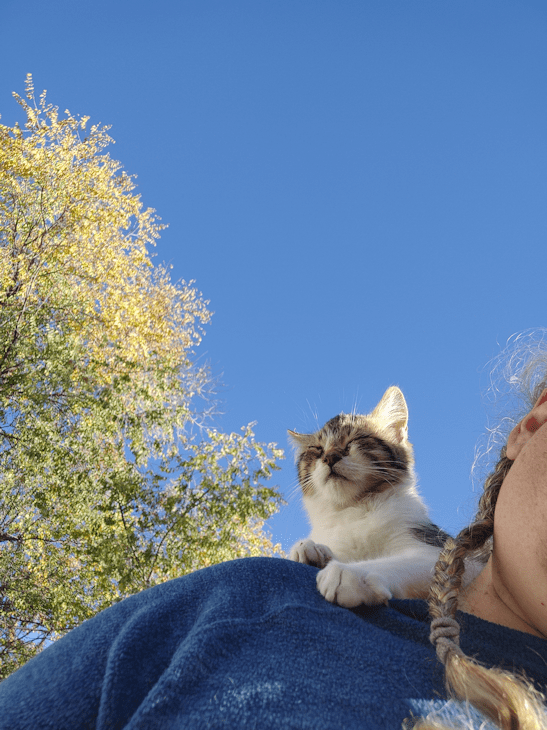 The supreme kitteh! October 13, 2022October 13, 2022 / Re-Farmer How regal! Perched at his favourite spot. Around the back of my neck! The Re-Farmer Share this:Share on Tumblr Click to share on Telegram (Opens in new window) Telegram Click to share on WhatsApp (Opens in new window) WhatsApp TweetMore Click to share on Reddit (Opens in new window) Reddit Like Loading... Related
