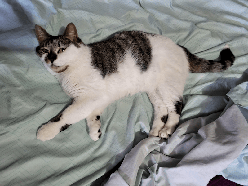 With other cats, I would just make my bed on top of them, and they’d either stay under the covers and nap, or slink their way out. I don’t want to do that to the Anxiety Bear, though. She gets way too stressed out!