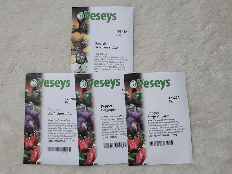 There were two seed orders waiting for me in the mail today. The first had the seeds I’d ordered with some trees from Veseys, earlier.
