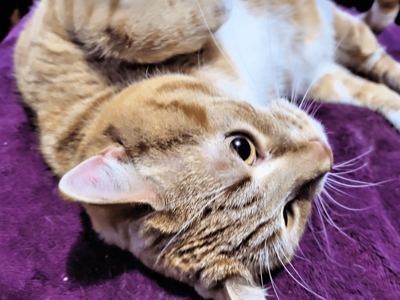 Ginger has gotten very difficult to get pictures of! If his head is anywhere near my hands, he will grab my hand and pull it to his head, so I can scratch his ears for him, and he doesn’t care if there’s a phone in my hand, as I try to get his picture! 😄