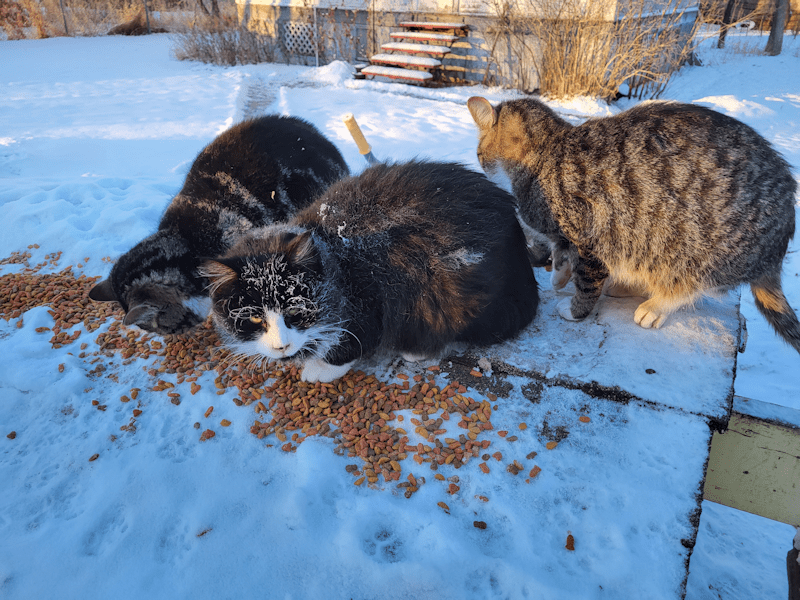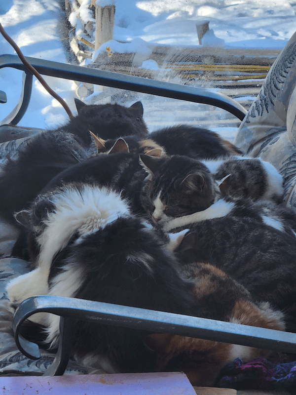 Well, I think I’ve spent enough time on the computer. Time to see what the status is with the roofers, and probably feed the outside kitties again. ๐