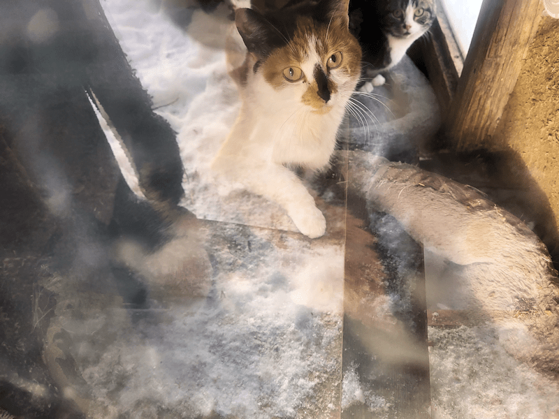 The cold has set in today; as I write this, we’re at -23C/-9F. The weather app says we have a wind chill of -33C/-27F, but we seem to be sheltered from that. It was nice and sunny, with no wind, so I was able to do some shoveling around the cat shelters and the south side of the house. Amazingly, in less than a week, the forecast now says we are supposed to have a couple days at 0C/32F!! Talk about temperature whiplash!