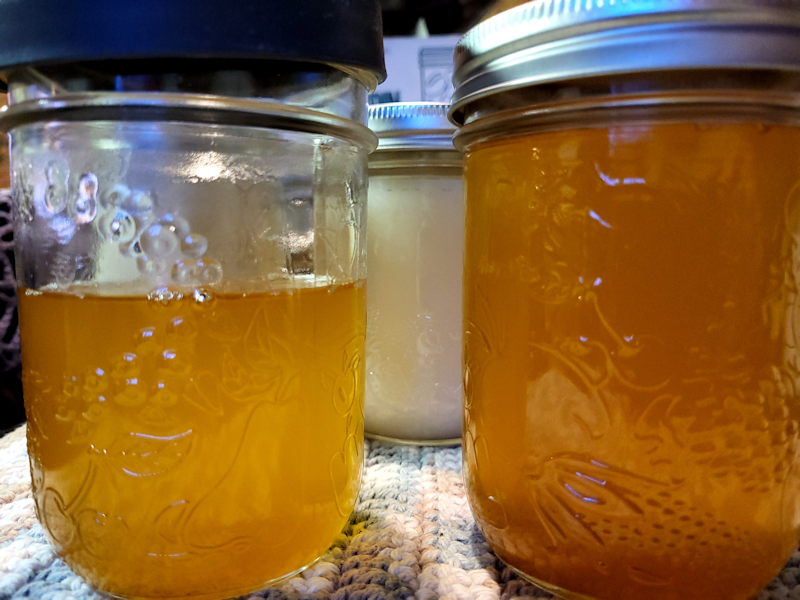 The first 6 jars were almost solid by the time the cracklings lard was done! I got another 1 1/2 pint size (500ml) jars out of the cracklings, making for a total of about 7 1/2 jars. The first batch was just under 8 jars total, so it came out very close.