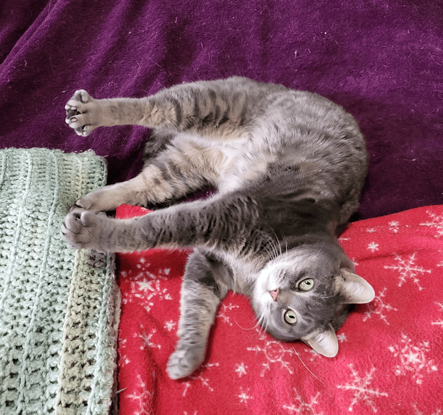 Potato Beetle, meanwhile, has settled right in like he’s been in the house forever. He has especially taken to my husband, and will often settle on his chest and go for a nap. Keith used to do that, to the point that when a cat did that, we’d say “I’ve just been Keith’d!” My husband misses Keith, and is quite enjoying being Keith’d by Potato Beetle. 💛