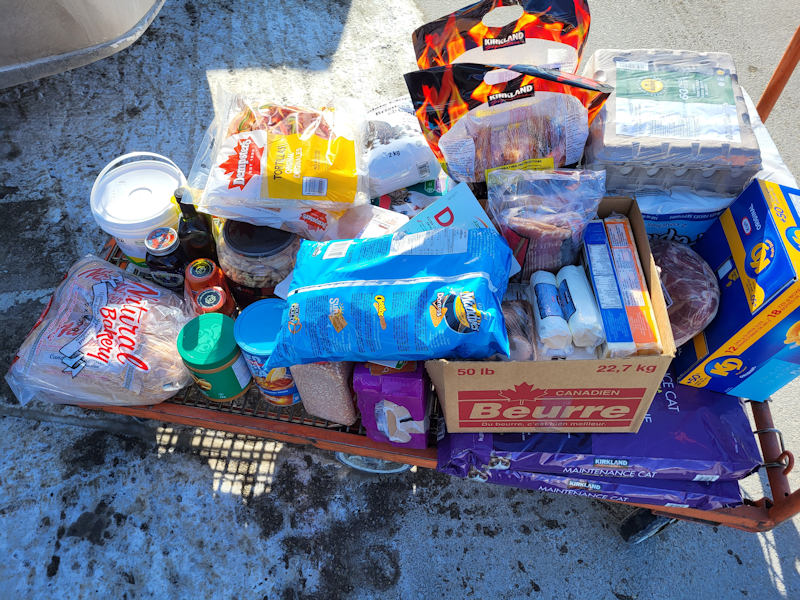 I did get two flats of eggs for $17.95 (yes, I’m still going to be buying flats of eggs from our egg lady! – we eat a LOT of eggs). While I was walking through Costco with them on my flat cart, a Native guy walking past me saw them and stopped to ask where he could find them. I told him, and he said that the same pack of 60 eggs costs $30 where he lives!! Prices at the northern reserves have always been insane, but yikes!