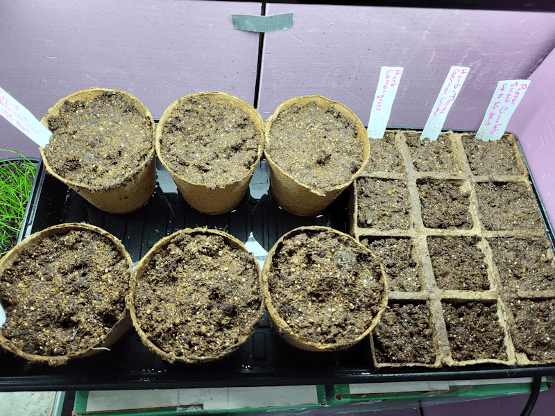Because of the size the Zucca melon and drum gourds will get before transplanting, those went straight into the largest degradable pots I have for now.