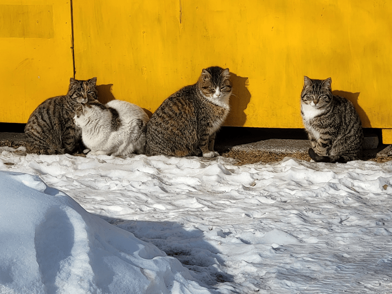 They’ve all managed to squeeze their butts onto a narrow strip of grass to enjoy the sunshine!