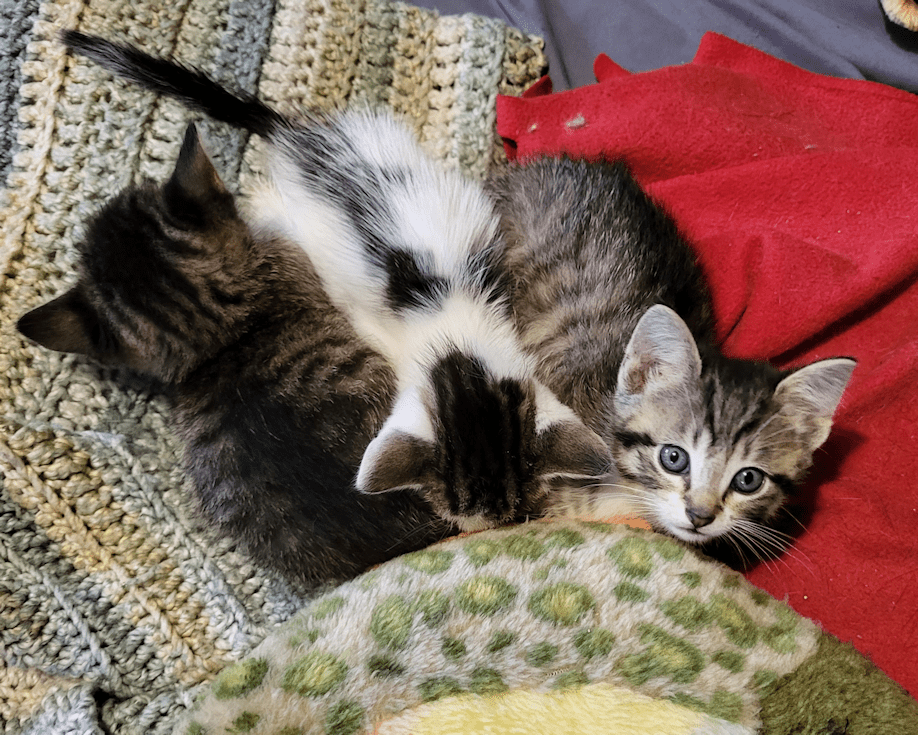 The next unexpected thing was not being able to move. I had a Question asleep on my neck, and several other kittens sleeping on various parts of my body.