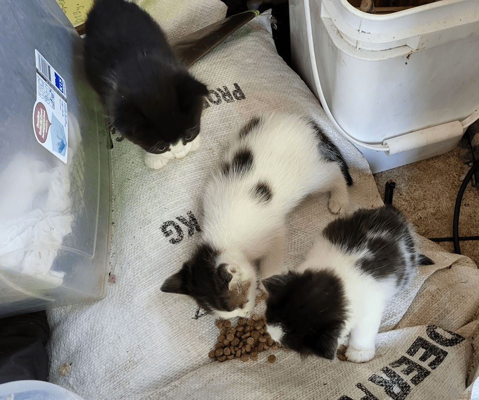 When we didn’t see the kittens after that, we thought the mothers might have taken them away again, but nope! They were there this morning!