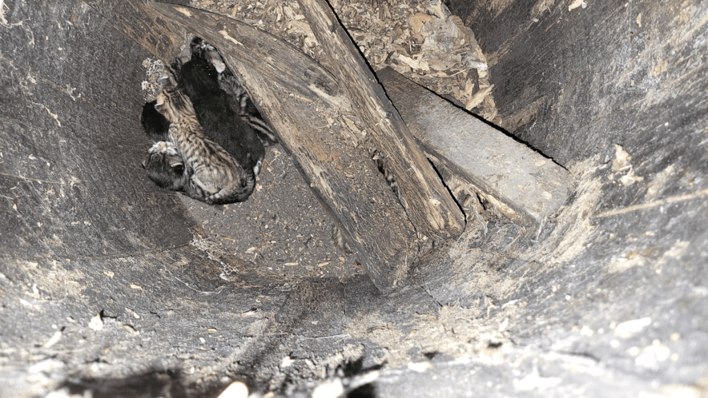If the mother were less feral, I’d be making a box nest and working to get the babies out, then setting the box somewhere the mother will find them, but if we do that, she might just abandon them. She would certainly end up moving them somewhere else.
