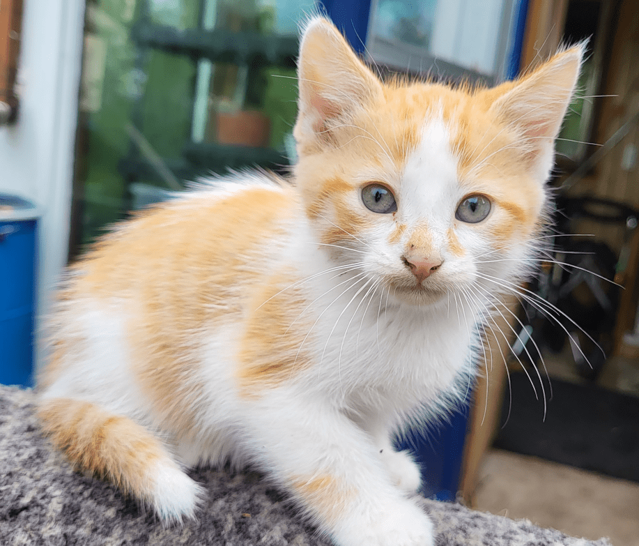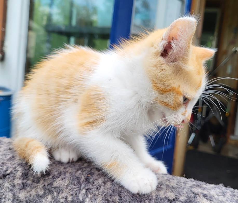 He was on the rail and did start to move away as I got closer, but the other end is covered in rose bush, slowing him down. That allowed me to pick him up and cuddle him a bit. When I put him back on the rail, he stayed and let me take his picture a few times.