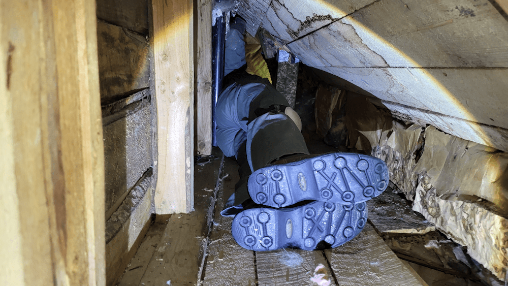 Then he went inside and upstairs to look into the area that’s above the bathroom.