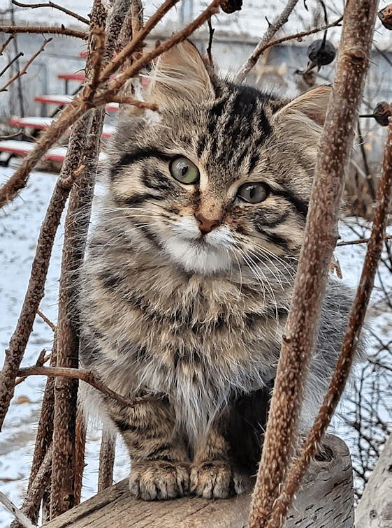 While feeding the outside cats this morning, I spotted the kitten with the cloudy eye.