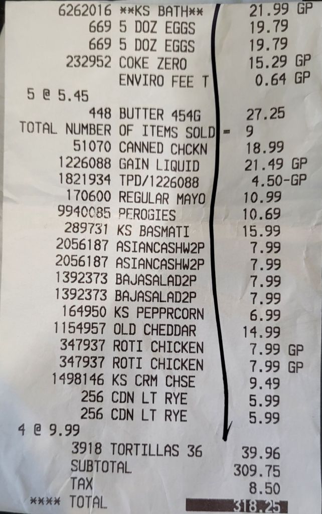 Cat supplies alone totaled $232.66 for this trip. The dry kibble is probably a couple of bags short to last us the month, but at least we’re set for a few weeks.