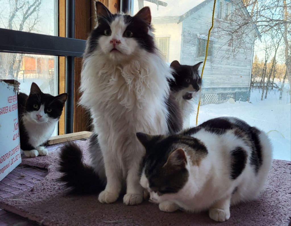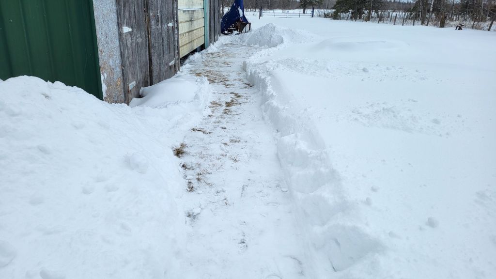 I counted only 17 outside cats this morning. Most in the sun room. They are using the cat house for shelter, but clearly the heat bulb in there is not working. I tried looking in the window, and I can see the heat shield is handing down, but that’s about it. I am assuming they unplugged it somehow, because I can’t see the red light that’s on the timer device. The window is so dirty and dark on the inside, I can’t see the timer or the outlet it’s plugged into at all. The good thing is, even without the heat bulb going, it’s warm enough that their body heat alone will warm it up in there. Opening up the roof to check isn’t an option right now. I like to leave the snow on the roof for extra insulation, plus we haven’t dug the path around it since the most recent snowfalls, so we can only access one corner right now. Even the back, where the counterweight is set up, would need to be dug out more. Otherwise, it can’t be fully opened.