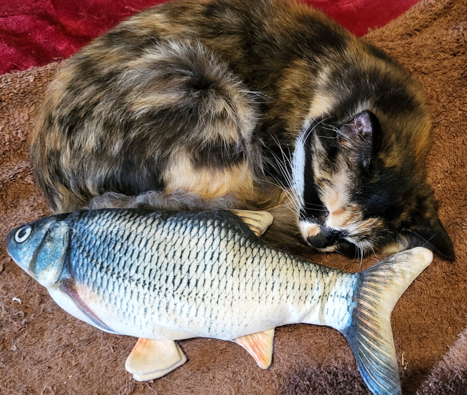 She has quite settled in, and I’ve even woken up to find her curled up on me! The only down side of that is, she’s got… digestive issues. Little Miss Leaky Butt has inadvertently created much laundry. She’s gotten better, but not as much as the others. For a while, we had a whole lot of cats having… liquidity issues. We had been using the Kirkland brand of cat food before changing up to other brands, including the donated kibble. I try to have different brands and flavours as much as is affordable (plus wet cat food, which we’ve been giving them more of, for other reasons), but when it comes to price per kilogram, the Kirkland brand is still the best deal, so that’s the dominant brand of kibble they all get. I wouldn’t have made any sort of connection until I read a blog post about the Kirkland dog formula changing, and the effect it had on their dog. I haven’t been able to confirm, but found that others have wondered if the cat kibble formula has also changed. Since our own cat problems reduced when they started eating mostly other kibble brands (when the bins are topped up, they can get mixed together), I am now suspicious as to the cause. PBC, however, is still a messy girl at times, even on the other brands.