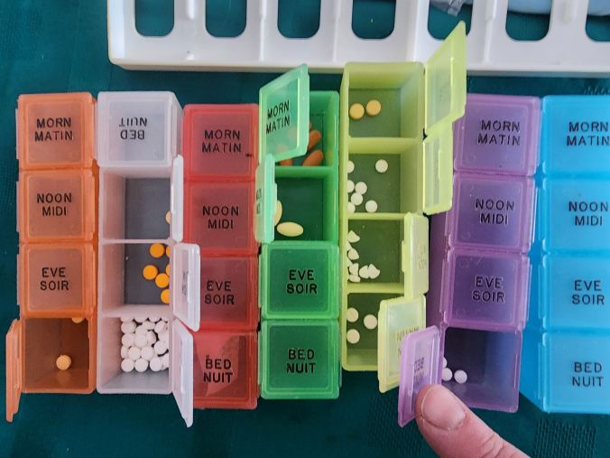 So I timed things to I would arrive at my mother just before the pharmacy would open. I had her bubble pack that she brought with her to the hospital, plus there was an almost empty one in the home care folder. There should have been a partial one in her cupboard that she was supposed to set aside when one of her doses was changed. I was already supposed to take that to the pharmacy, so they could repack the ones that did not get changed.