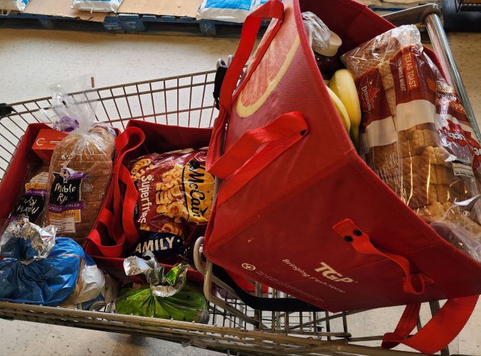 Last of all was bread that was on sale; two loaves of marble rye and two of whole wheat Texas Toast.