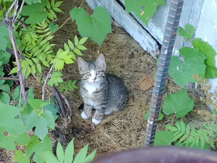 It’s hard to see, but there’s a kitten behind the grapevines in the background. :-)