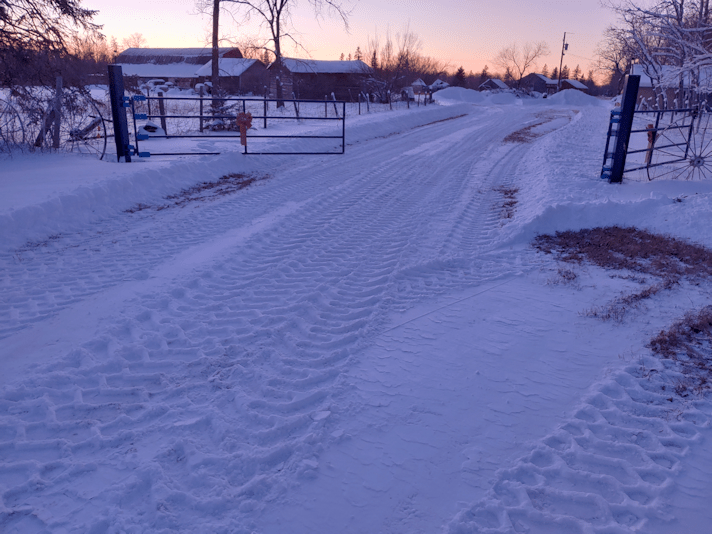 It was the renter’s farm hand. He had been driving by with their tractor and noticed we’d cleared a few paths in the snow, so he stopped, climbed the gate, and offered to clear the driveway for us! Last year, he happened by while I was out with the electric snow blower, working on the driveway. The gate was open, so he drove right in and cleared it for me! He did in a few minutes, what would have taken me hours.