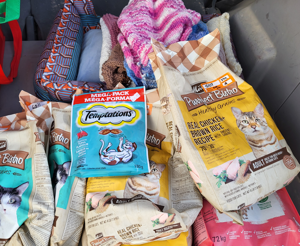 Another donated cat bed, more blankets, and 6 bags of kibble! Plus treats.