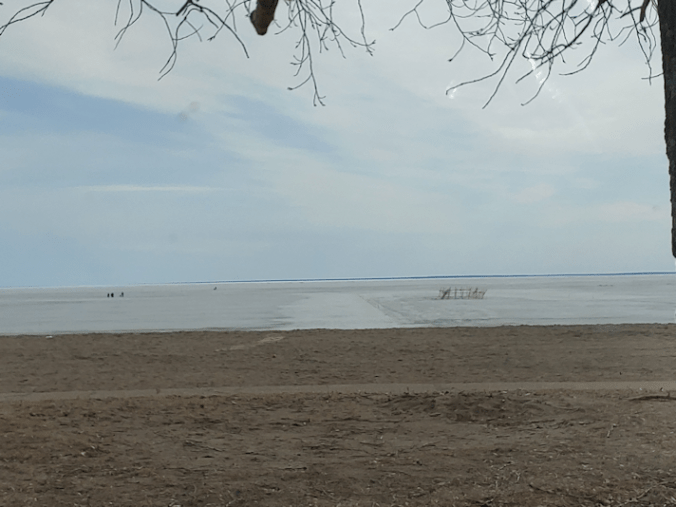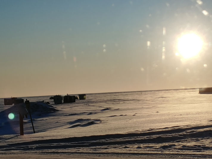 The ice fishing shacks are long gone, but the ice is still thick enough for people to walk on it, and do a bit of ice fishing without a shack.