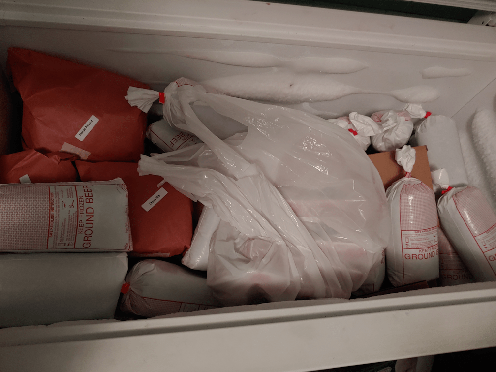 That done, I didn’t have very long to wait in the truck before the lady arrived with my beef share. We could only do a 1/8th share this time, so it was just two boxes. The shares were smaller this year, as they butchered heifers this year instead of steers, so with our monthly payments, we actually ended up with a refund. I would like to do a quarter beef again, so I asked about the possibility of sending them payments starting in January.