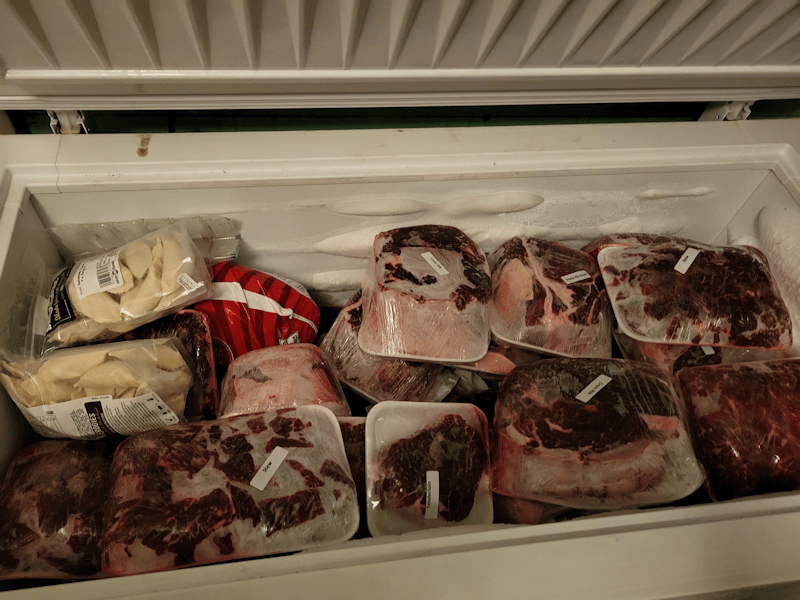 Once that was done, I empties the boxes into the freezer. With the extra shopping we’ve done for Christmas and New Years, there isn’t a lot of room! We couldn’t have fit a quarter beef in there, that’s for sure.