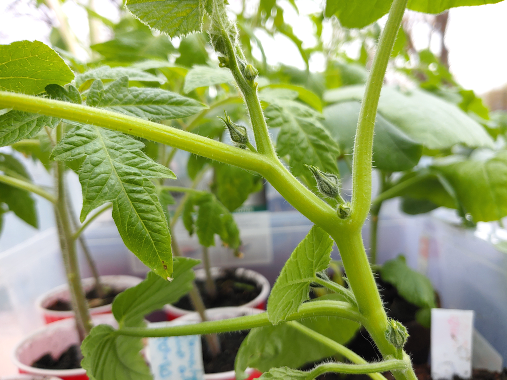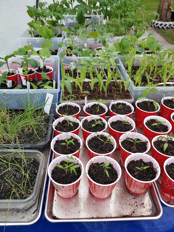 The transplants seem to be quite liking their time outdoors, and even the newest little tomatoes in the foreground are looking generally robust.