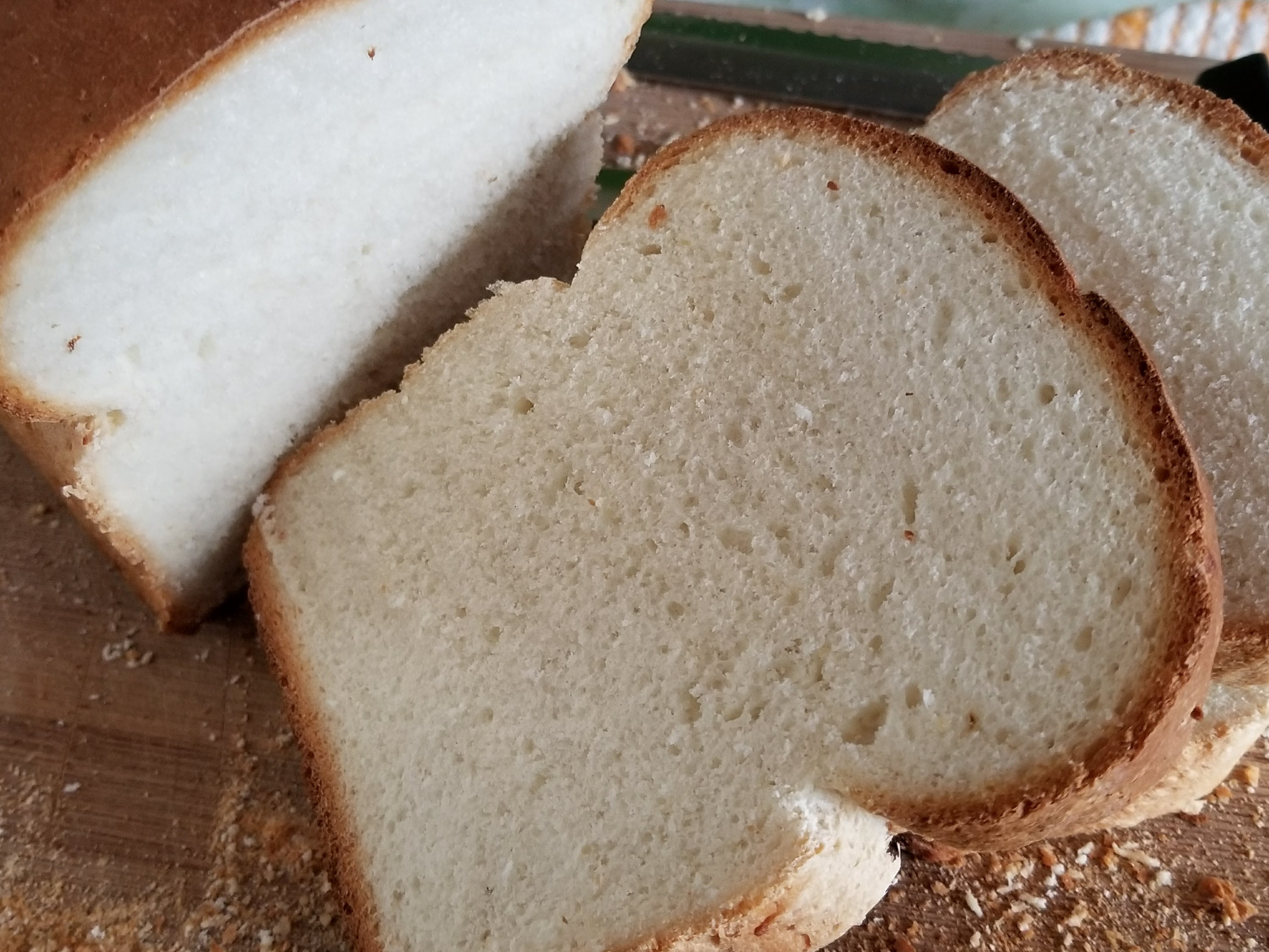 The resulting bread has a lovely, spongy texture that is dense enough to handle being spread with rather cold butter (when we buy bread, sometimes I have to warm up the butter in the microwave for 8-10 seconds, just to be able to spread it. Otherwise the slices just disintegrate!).