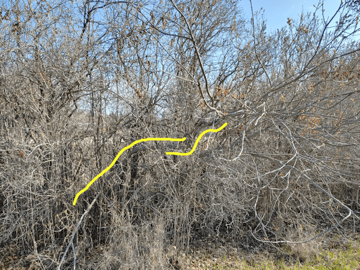 Then I went to get one of the vines out of the spirea, where I found the green spotted caterpillar. So pretty! I was able to untangle the vine without disturbing it.