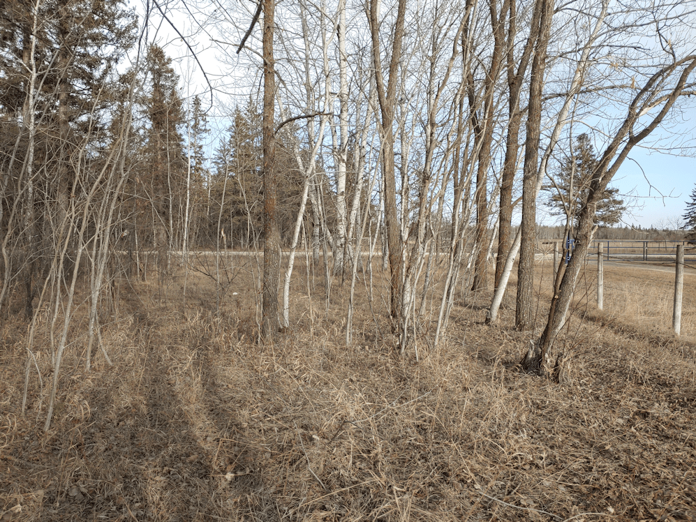 My mother had a row of raspberry bushes here. Elms and maples had self-sown among them. When my mother transplanted the raspberries (into an area that’s full shade!), she left the self-sown saplings. For a “wind break” she told me. The garden used to extend another 6 feet or so to the north. As they are now, the trees take up a space about 10-12 ft (3-3.6m) wide, and about 100 ft (30.5m) long.