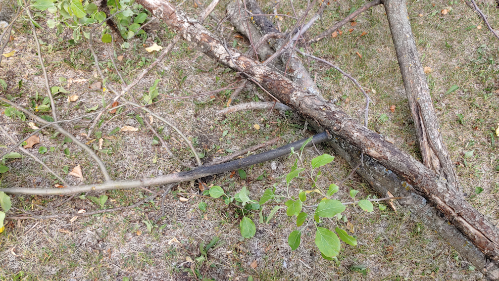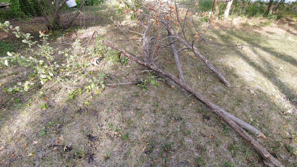 There was a third apple tree, growing between the plums, with a dead piece I cut off as well, though I neglected to take photos of that one.