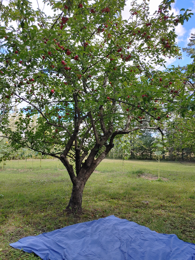 In the row of trees by the spruce grove, there are really just two trees that we can use. The others have such small apples, they’ll be left for the birds and the deer.